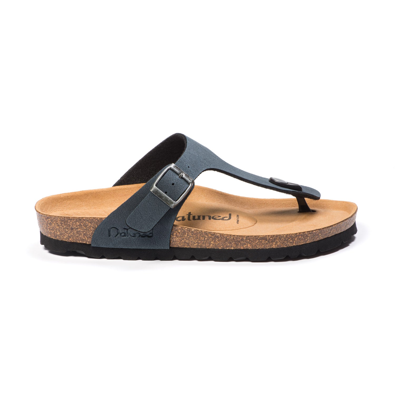 Sandalia de dedo unisex fabricada artesanalmente en España por la marca Natuned. Su parte superior de microfibra es una opción vegana y sostenible, suave y resistente. La correa ajustable proporciona una sujeción segura, mientras que la plantilla anatómica de látex ofrece confort y soporte incluso durante caminatas largas. La suela de corcho y goma asegura ligereza, flexibilidad y transpirabilidad. Perfecta para el verano, esta sandalia combina simplicidad, comodidad y conciencia ecológica.